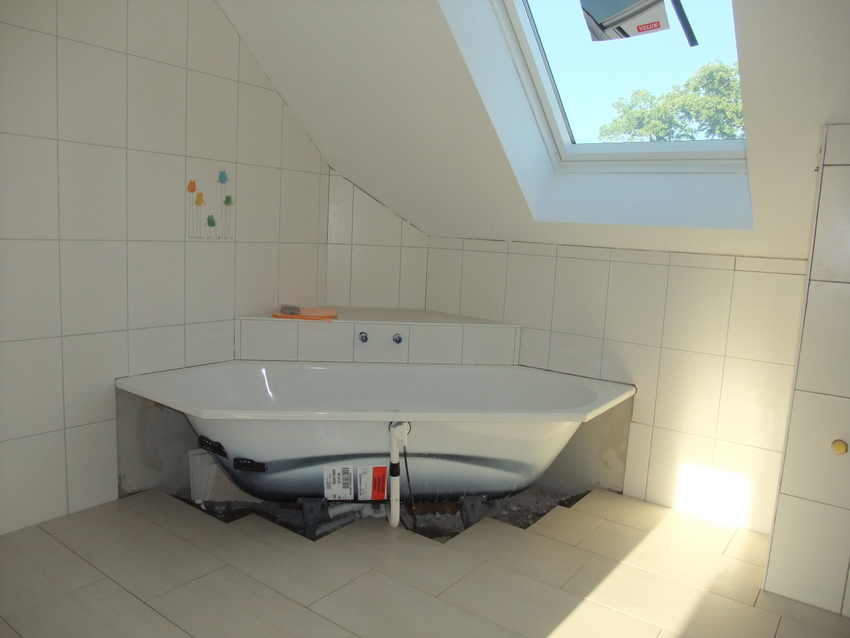 13. Oktober: Fliesenarbeiten in Bad und Keller, Mutterboden, Pflaster