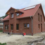 Die Kommunalwahlen trieben uns heute schon nach dem Frühstück nach draußen. Ein Spaziergang zum Häuschen bot sich also an. Zufällig kam auch der Verfuger, der noch eine Probeverfugung anbrachte. So konnten wir unsere Vorstellungen ihm direkt mitteilen.