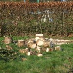 Mit Hilfe von lieben Freunden, Steffen und Uli, wurde am 15. April die Tanne gefällt. Außerdem kam die dicke Hecke weg: