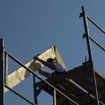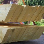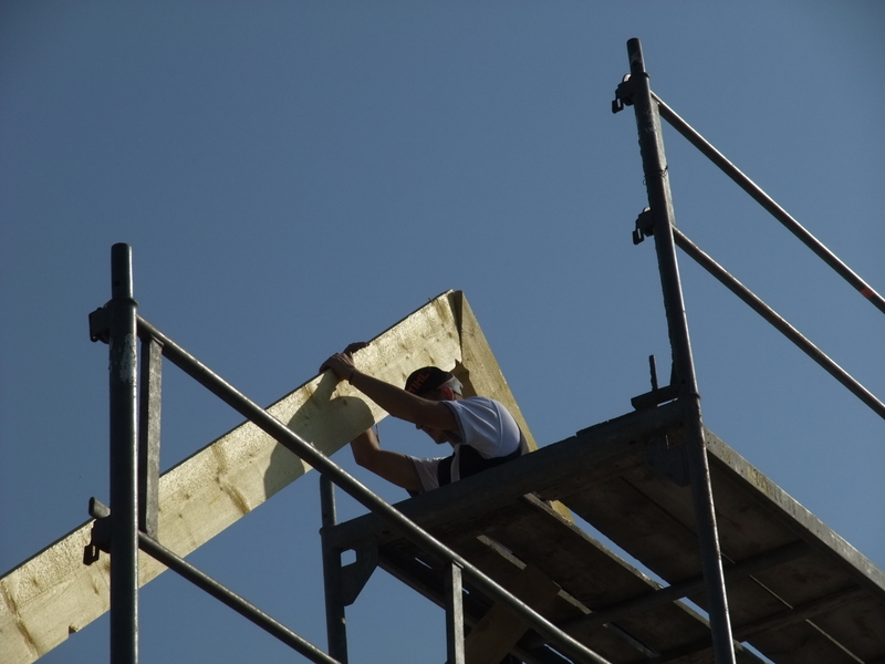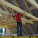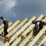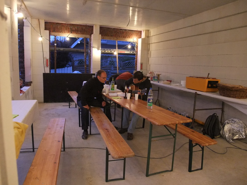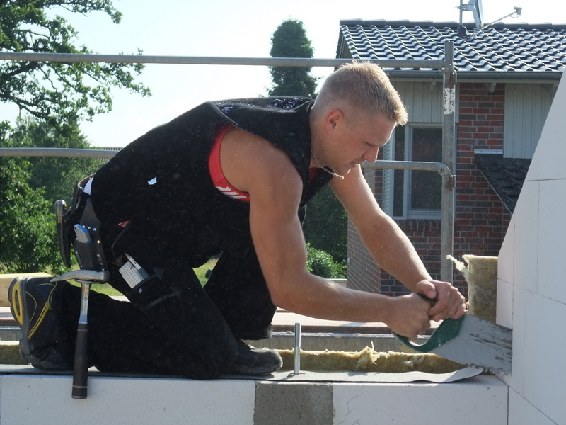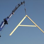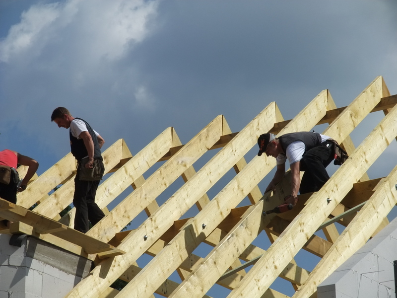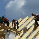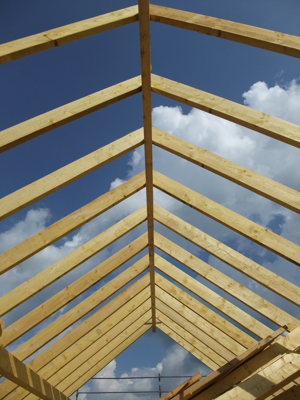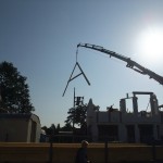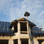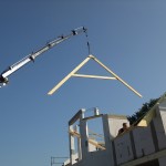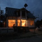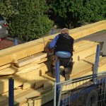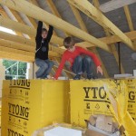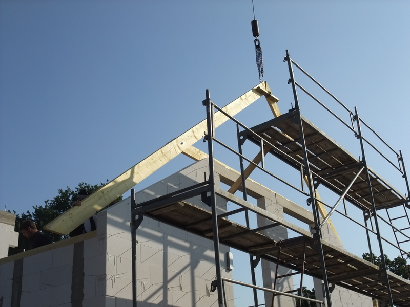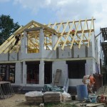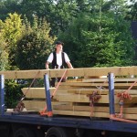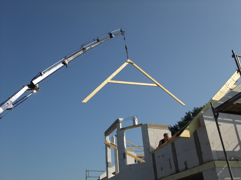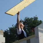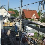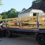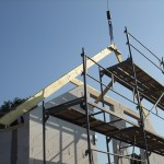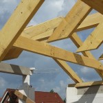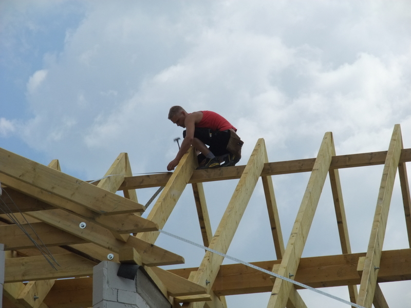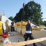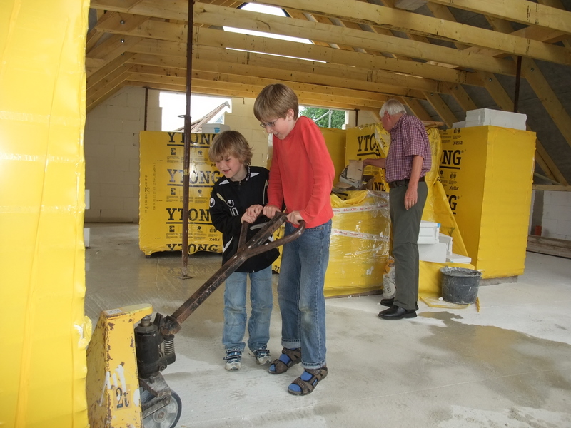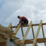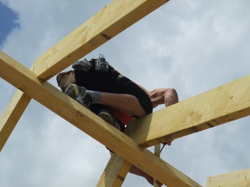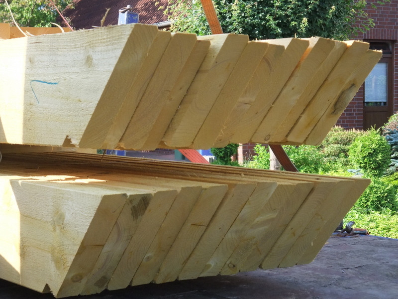 Um 8 Uhr sind die Zimmerleute gekommen, um 14 Uhr war der Spuk vorbei. Leider blieben die Zimmerleute nicht bis zum Richtfest. Aber Herr Koopmann und seine Leute haben sie würdig vertreten.