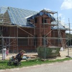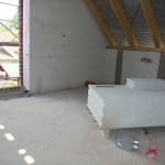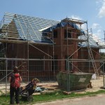 Am Freitag wurde auch der Dachstuhl mit Dachlatten versehen, so dass die Dachpfannen hoffentlich in wenigen Tagen auf das Dach kommen.