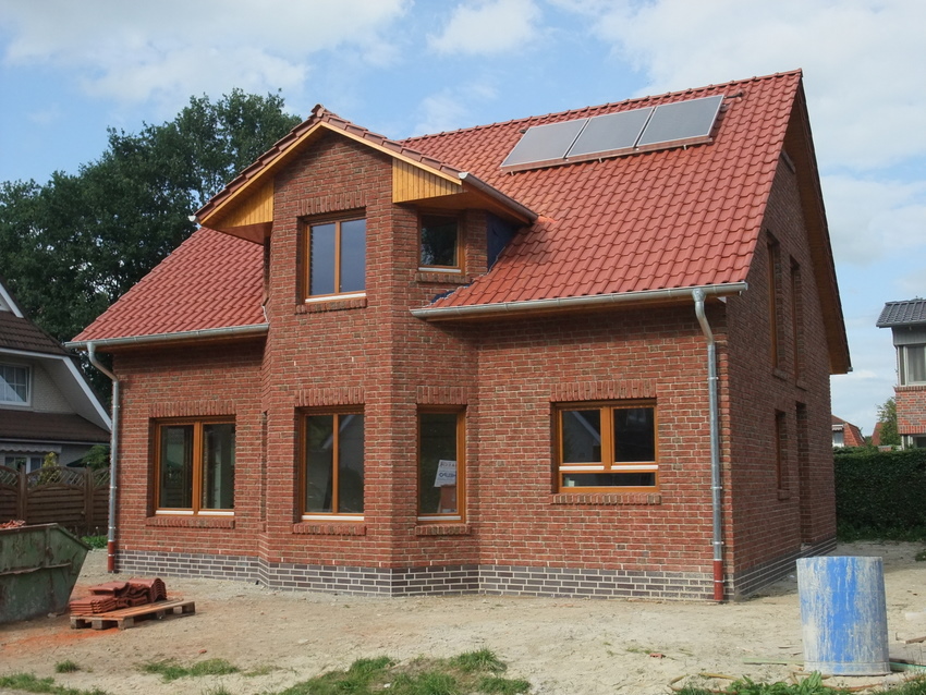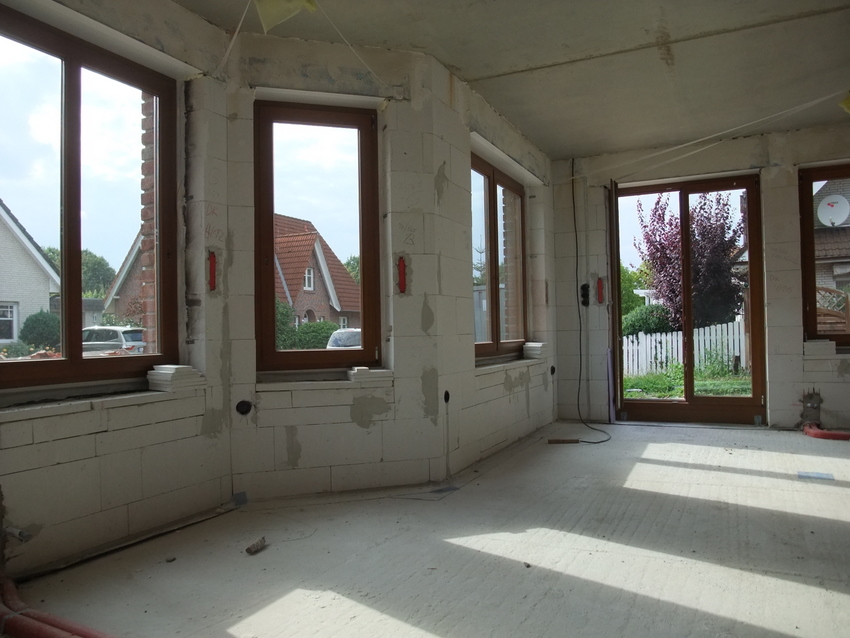 So sieht das Haus schon wieder ganz anders aus. Ab Mittwoch sollen die Putzarbeiten anfangen. Hoffentlich ist der Elektriker bis dahin fertig.