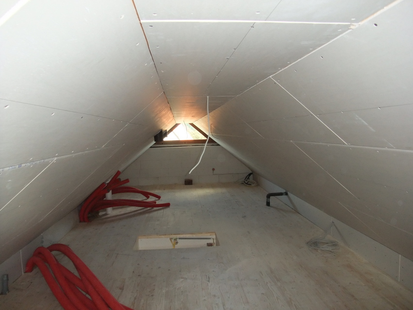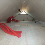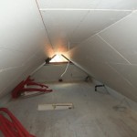 Der Spitzboden ist nun auch verkleidet, so dass die Folie nicht mehr beschädigt werden kann. Außerdem sieht es so natürlich schöner aus.