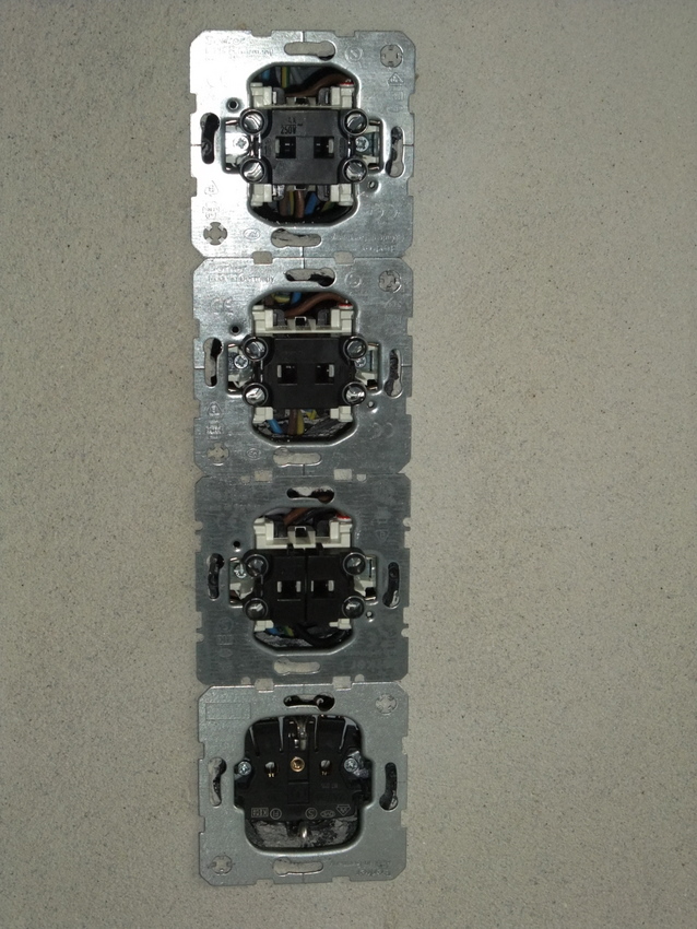 Fortschritte gibt es auch von der Elektriker-Front zu berichten: Steckdosen sind schon gesetzt und die Lichtschalter, Lüsterklemmen an allen Lampenanschlüssen.