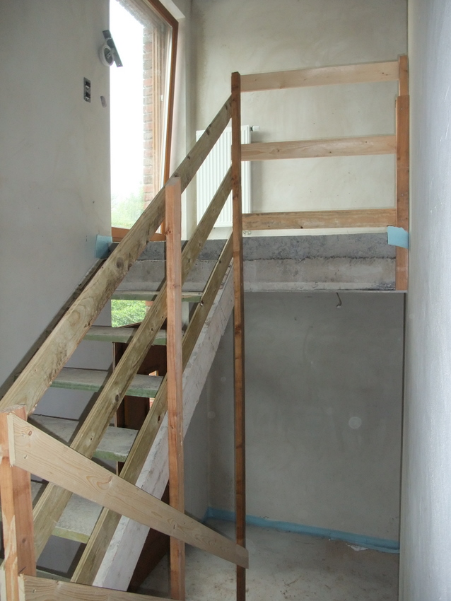 Auch im Treppenhaus gibt es nun wieder ein Geländer. Sicherheit auf dem Bau geht vor.