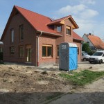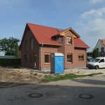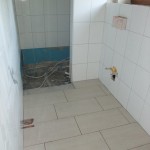 Die Fliesenarbeiten gehen weiter, Bodenfliesen im Gästebadezimmer und im kleinen WC sind gelegt und sehen gut aus. Auch die Tapezierer sind fleißig am Werk. Eine Tiefbaufirma hat zudem die Abwasserschächte gesetzt, so dass am Donnerstag die Abwasserrohre und Regenrinnen an die Kanalisation angeschlossen werden können.