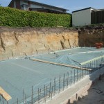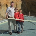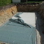 Durch den starken Wind wurde die Folie teilweise von dem Betonboden geweht. So kam es zu einem schnellen Einsatz von den Brüdern, unterstützt vom Nachbar Tim. Mit Latten wurden die Folien wieder fixiert, um ein zu schnelles Austrocknen und damit die Gefahr von Rissbildung zu vermeiden.